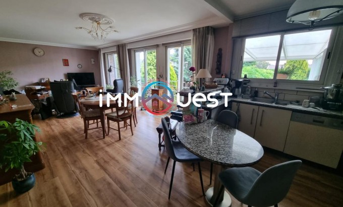 Elle offre un grand sous sol , 2 chambres , un séjour lumineux , une belle terrasse donnant sur un jardin paysager .