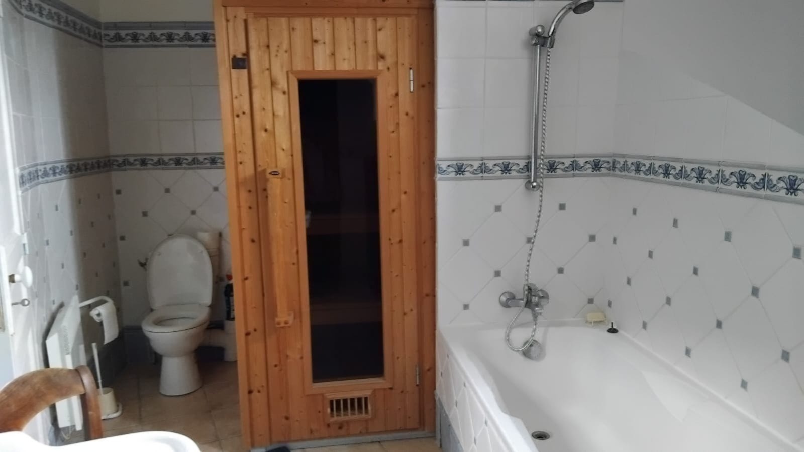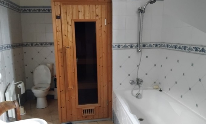 Salle de bains avec baignoire et sauna