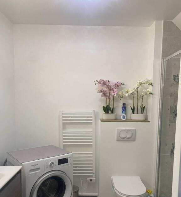 Équipements complémentaires : 2 télévisions neuves (55" et 32"), tapis, rideaux, vaisselle, machine à café, fer et table à repasser, plantes et décorations