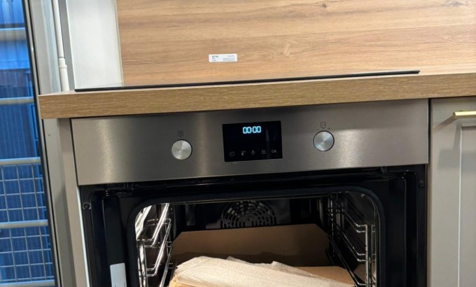 Cuisine équipée : plaque gaz, four, hotte et nombreux rangements