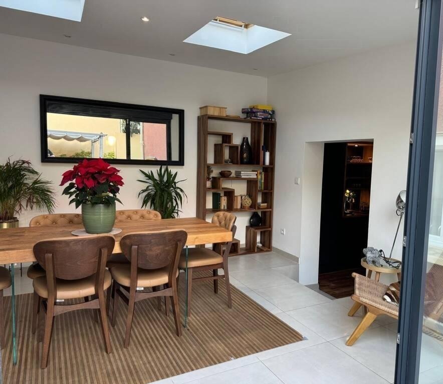 Salle à manger aménagée dans une véranda lumineuse utilisable toute l'année