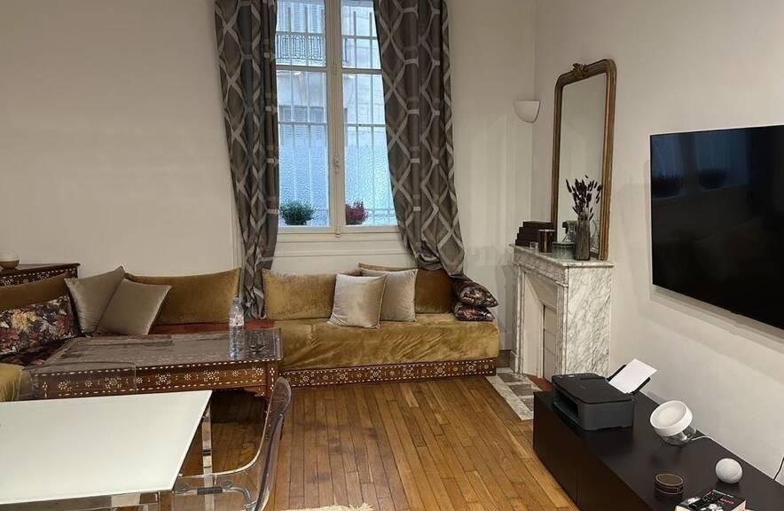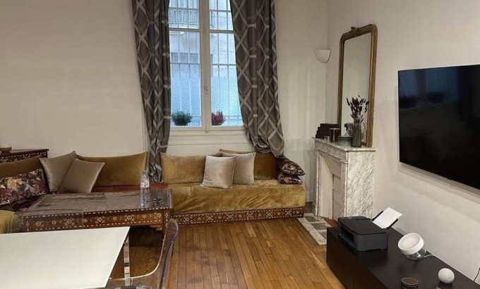Situé au rez-de-chaussée d'un immeuble haussmannien de standing, cet appartement de 65 m² entièrement meublé offre un cadre de vie élégant et confortable.