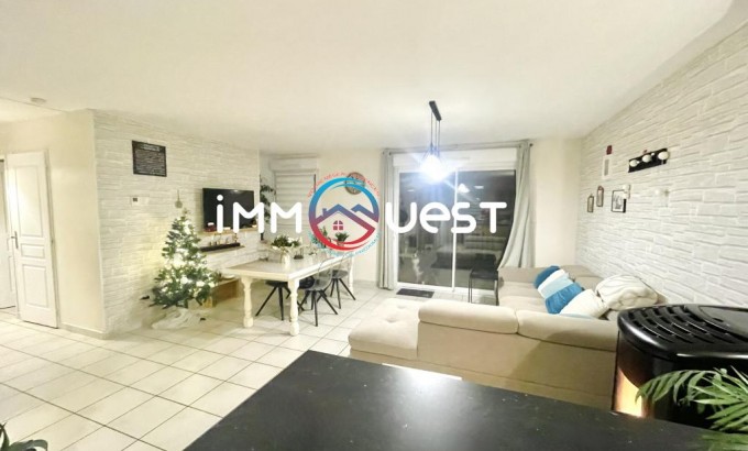 D’une superficie de 115m² habitable, elle se compose d’un espace de vie lumineux ouvert sur une cuisine aménagée et équipée, pensée pour être fonctionnelle et pratique au quotidien.