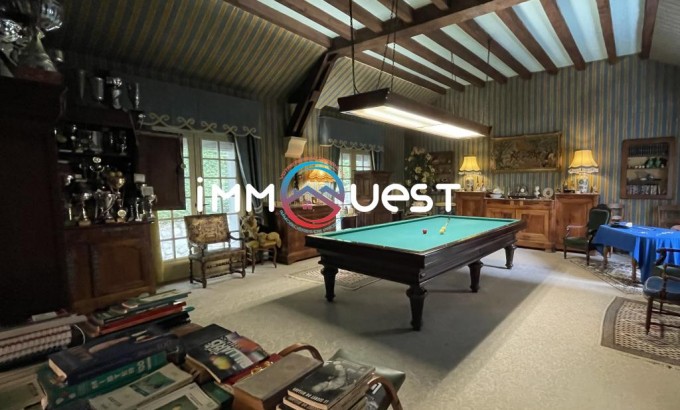La maison est édifiée sur un magnifique terrain arboré de 3470m² et vous offre une belle vue dégagée, au calme tout en étant proche des voisins. La maison construite dans les années 60 en brique traditionnelle puis agrandie dans les années 75 est composée d'un sous sol, et à l'étage une entrée dessert une chambre avec son cabinet de toilette, puis deux autres chambres avec un cabinet de toilette commun, une salle d'eau, un grand salon salle à manger avec cheminée et cuisine équipée ouverte, ensuite une grande pièce de loisirs et enfin un grenier permet de créer deux grandes chambres. Cette belle maison nécessitera un rafraichissement complet, la qualité des matériaux (brique traditionnelle) ont permis d'avoir un classement diagnostic DPE D et GES D.