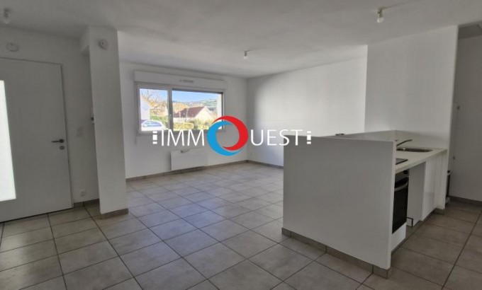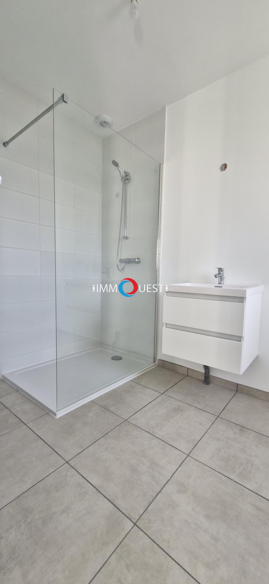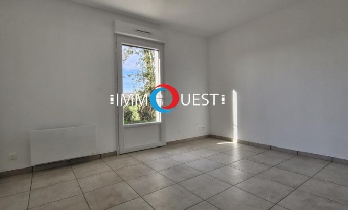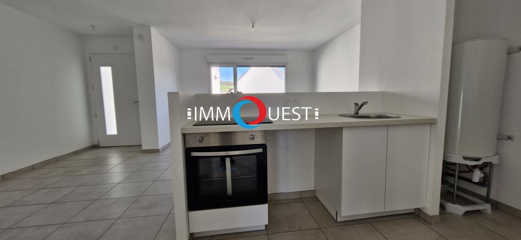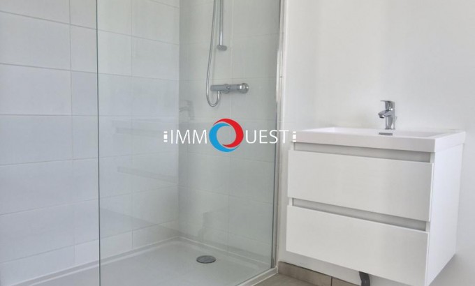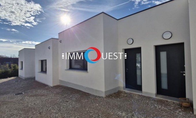 Nouveauté disponible à la location : maison comprenant une pièce de vie, une salle de bains avec douche et WC, ainsi qu’une chambre, au sein d’un petit ensemble récent de six logements identiques.
