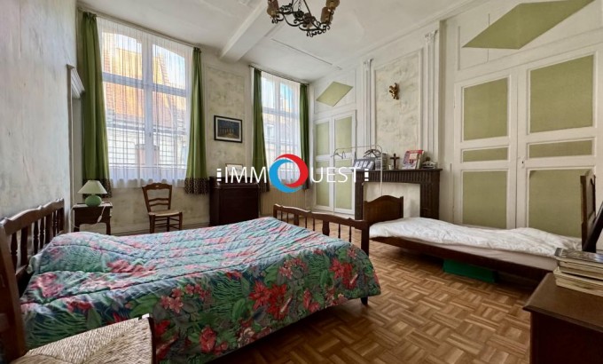 Une visite s'impose pour cette maison située en hyper centre d'AIRE SUR LA LYS , qui se compose d'un appartement type T2 avec entrée indépendante (environ 66 m²) et d'une habitation (environ 251 m²) avec jardin et stationnement privatif! La maison se compose d'une cuisine aménagée équipée, vaste séjour (53 m²), salle de bains, WC, cave, "véranda" (53 m²) et à l'étage: 5 chambres et une seconde salle de bains.