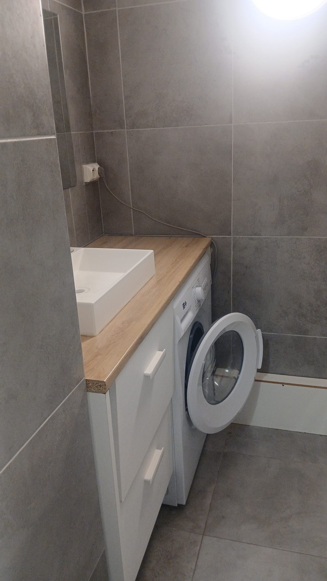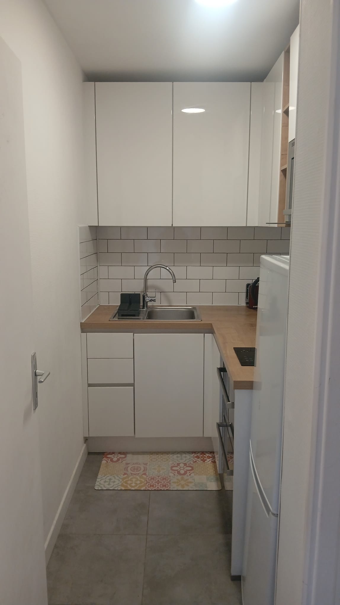 Cuisine entièrement équipée (plaques, réfrigérateur, micro-ondes, rangements)