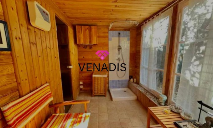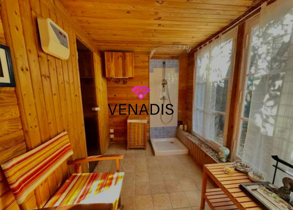 Jardin sans aucun vis à vis,. Une dépendance a été transformée en sauna.