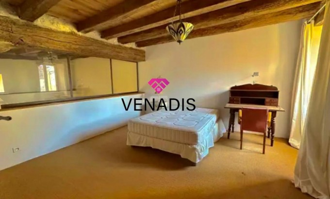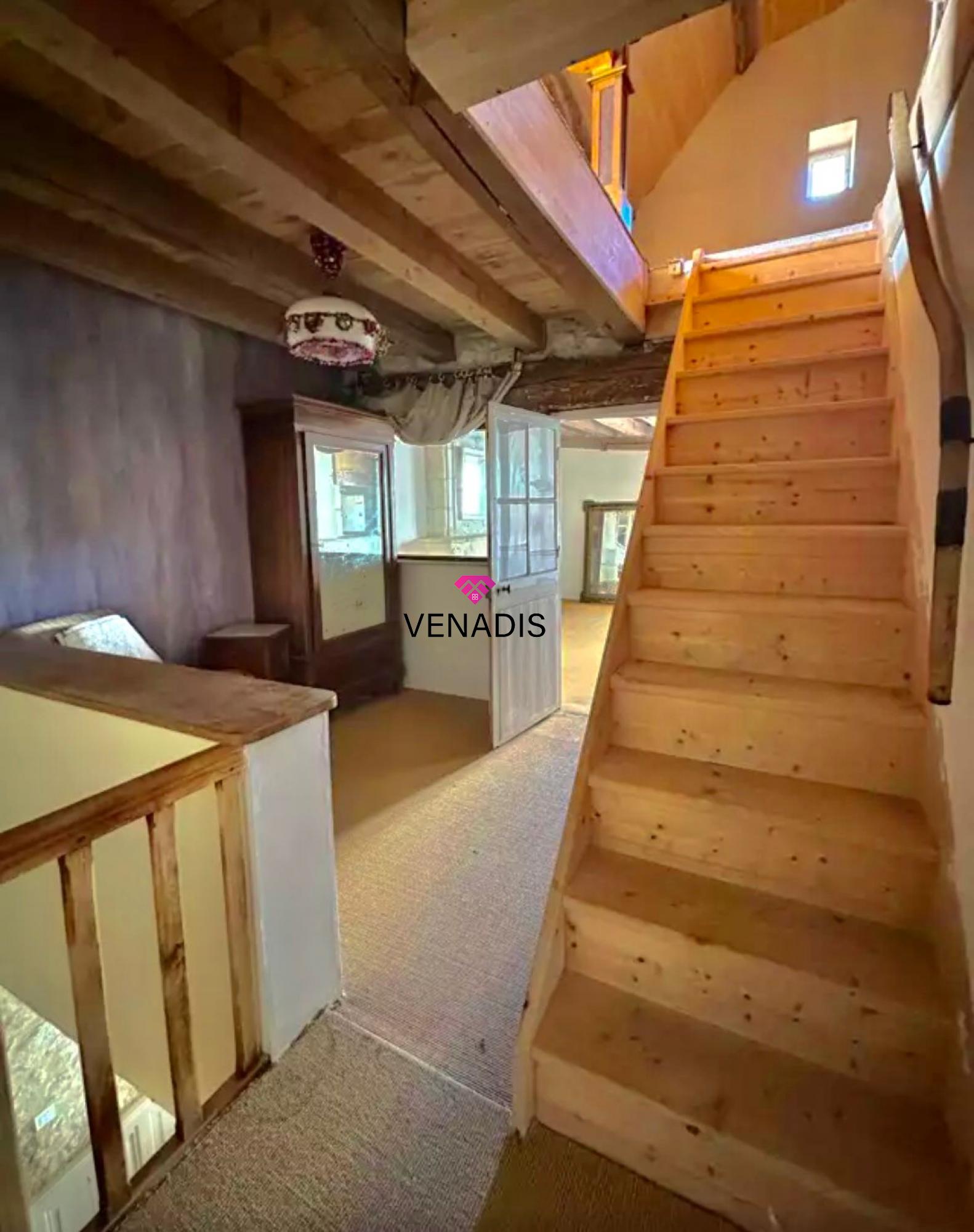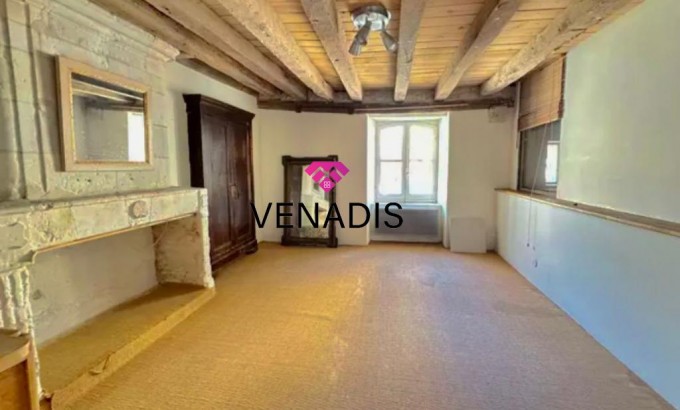 Demeure de charme 190m² OFFRE au rez de chaussée un spacieux séjour de plus de 50m² avec plafond cathédrale , pierres apparentes, poêle à bois, cuisine de 22m² avec accès jardin, salle d'eau ET wc.