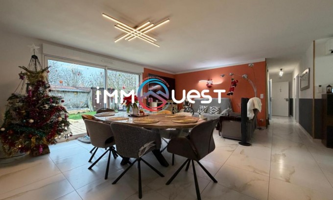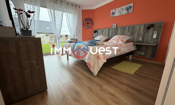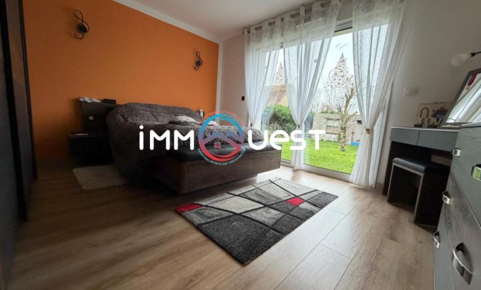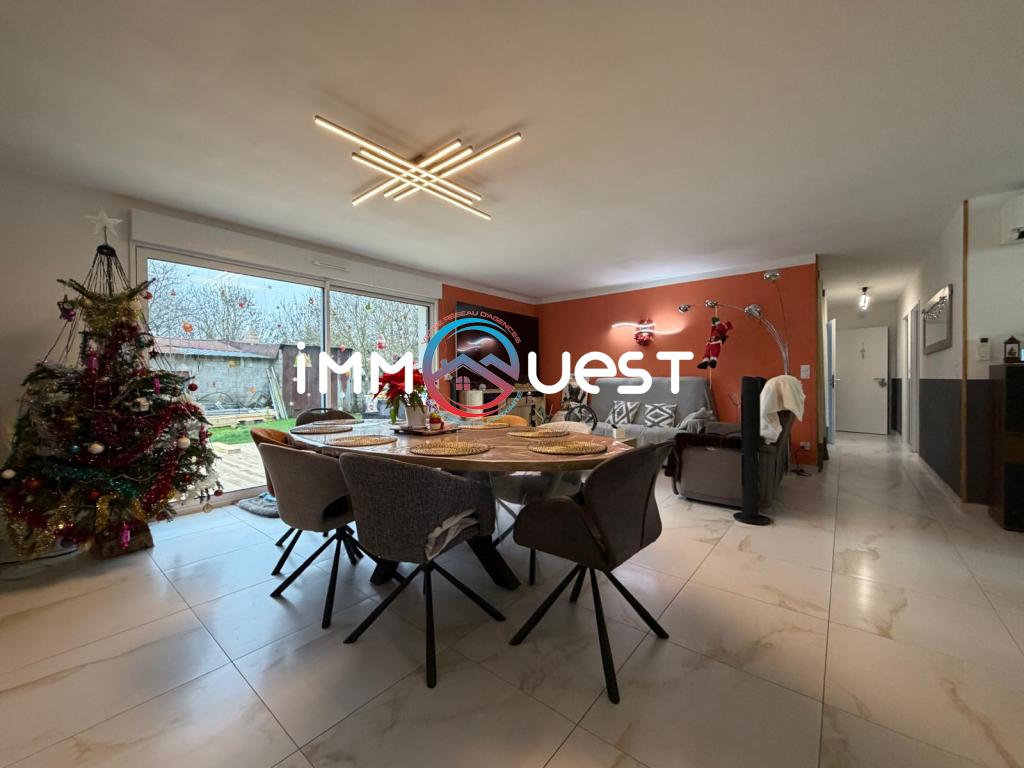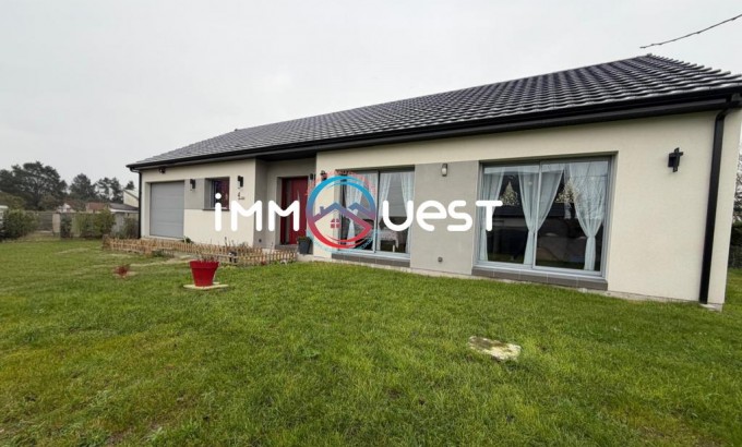 Cette maison récente et moderne se compose de 3 chambres, d’un salon-séjour lumineux ouvert sur une cuisine, d'une grande salle de bains, d’un WC indépendant ainsi que d’un garage avec porte motorisée, et buanderie.