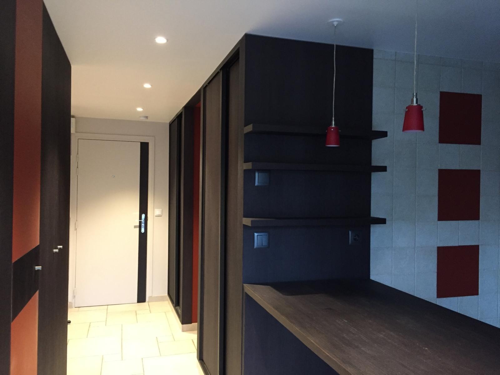 Une grande entrée avec deux grands placards aménagés