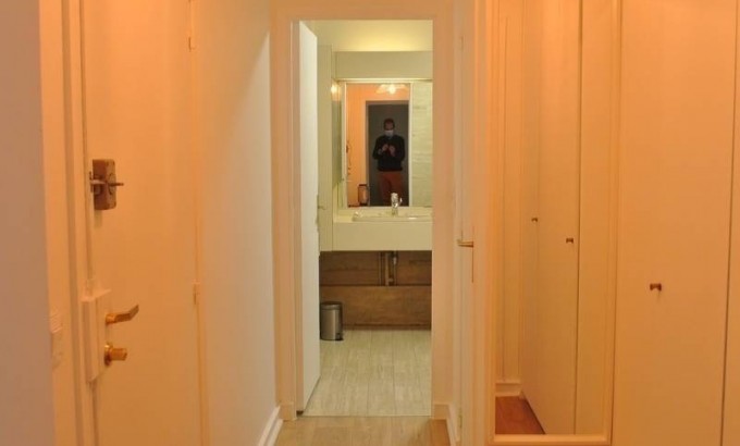 À seulement 5 minutes à pied des métros Les Sablons et Pont de Neuilly, au pied des commerces, dans une résidence de standing des années 1970 avec ascenseur, gardien et grand parc arboré, bel appartement entièrement refait à neuf de 50 m², lumineux et sans vis-à-vis.