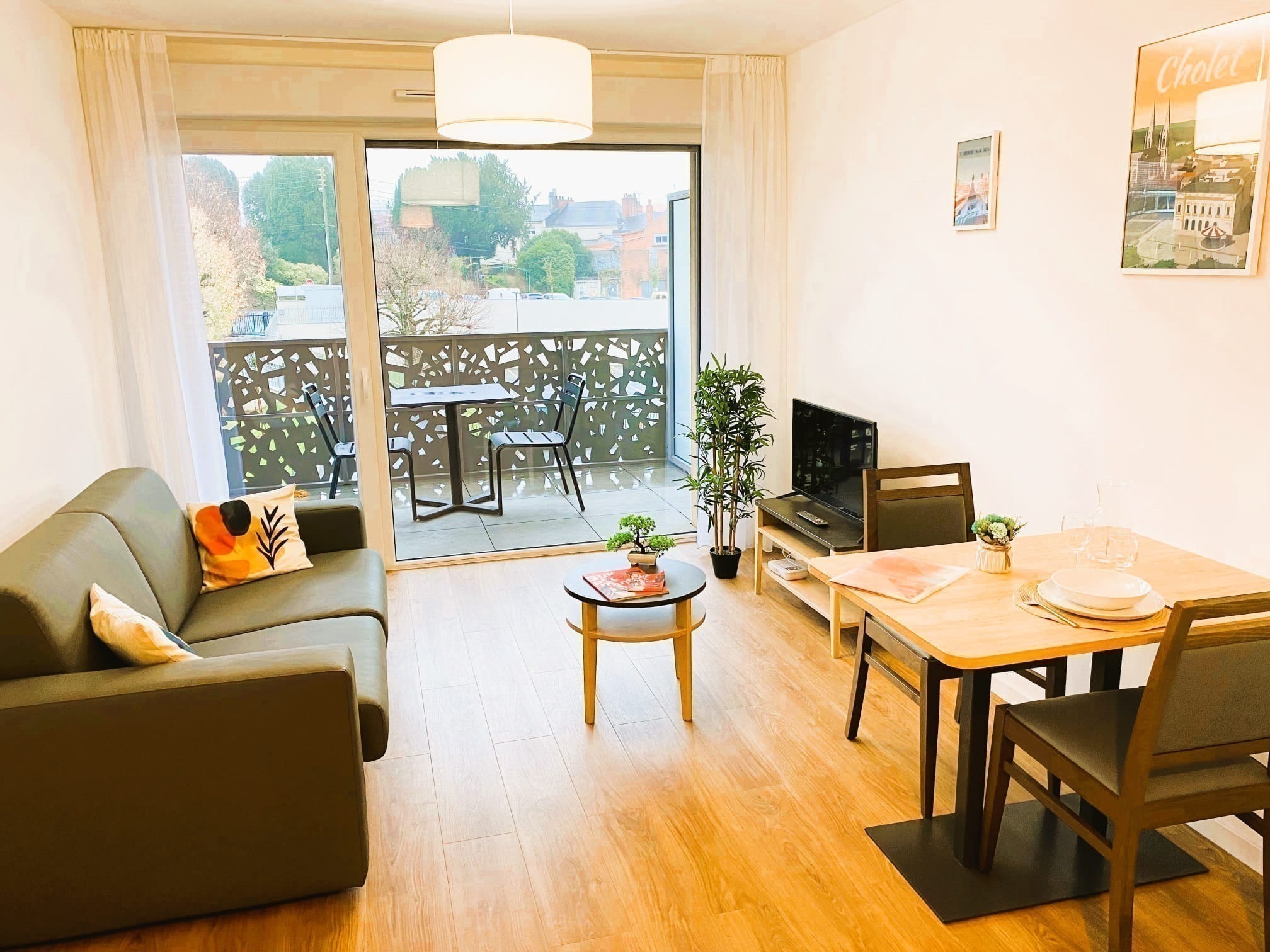 À louer, charmant appartement 2 pièces entièrement meublé et équipé, situé à Cholet, dans les Pays de la Loire. Idéal pour profiter d'un cadre de vie agréable et pratique, à seulement 50 minutes de Nantes et d'Angers, et 1 heure des Sables-d'Olonne.